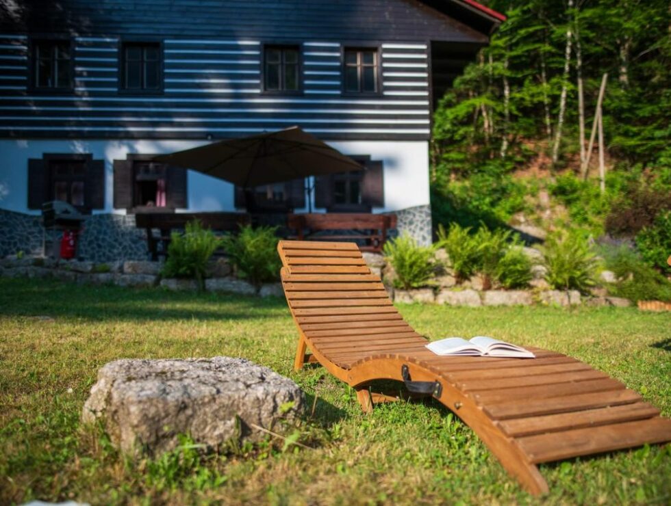 Na zahradě si užijete terasu s posezením, slunečníkem a grilem. Grill je plynový, láhev máte k dispozici zdarma. Všudypřítomný klid vám zpříjemní pohled na říčku Bílá Desná přímo před chatou, ve které se můžete v létě svlažit. Opodál najdete ohniště s dalším posezením na opékání buřtů nebo i bylinkovou zahradu a lesní jahody. Nezapomněli jsme ani na ty nejmenší – děti si užijí skluzavku, houpačku, pískoviště a domeček v lese.